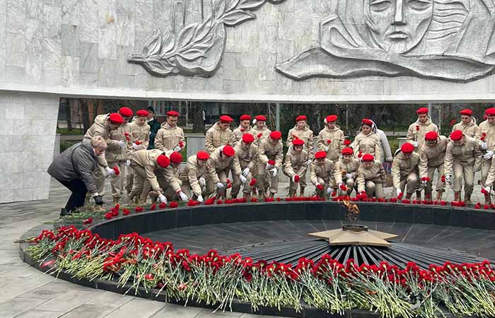 Юнармейцы школы приняли участие в возложении цветов к мемориальному комплексу «Павшим воинам»